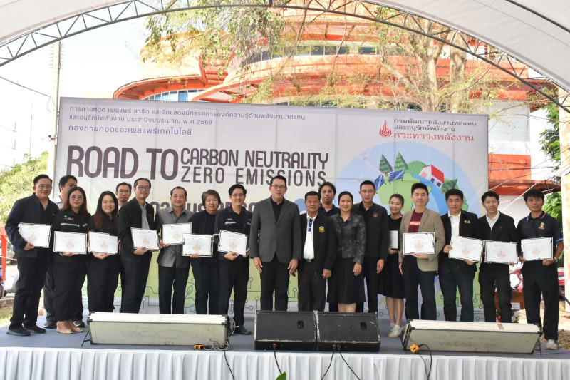 วันที่ 20 กุมภาพันธ์ 2569 นายนิติกรณ์ สาธุเม ผู้อำนวยการศูนย์ถ่ายทอดเทคโนโลยีการสหกรณ์ที่ 2 จังหวัดปทุมธานี พร้อมด้วยบุคลากร เข้าร่วมพิธีเปิดและชมนิทรรศการในกิจกรรม "การถ่ายทอด เผยแพร่ สาธิต และการจัดแสดงองค์ความรู้ด้านพลังงานทดแทนและอนุรักษ์พลังงาน ประจำปีงบประมาณ พ.ศ. ๒๕๖๙" ภายใต้หัวข้อ “Road to Carbon Neutrality” โดยมีวัตถุประสงค์เพื่อให้หน่วยงานภาครัฐ เอกชน สถาบันการศึกษา และประชาชนทั่วไป ได้แลกเปลี่ยนประสบการณ์ แนวคิด และสร้างเครือข่ายความรู้ ด้านพลังงานทดแทนและอนุรักษ์พลังงาน ณ ศูนย์บริการวิชาการที่ ๑ (จังทวัดปทุมธานี) ตำบลคคลองหนึ่ง อำเภอคลองหลวง จังหวัดปทุมธานี